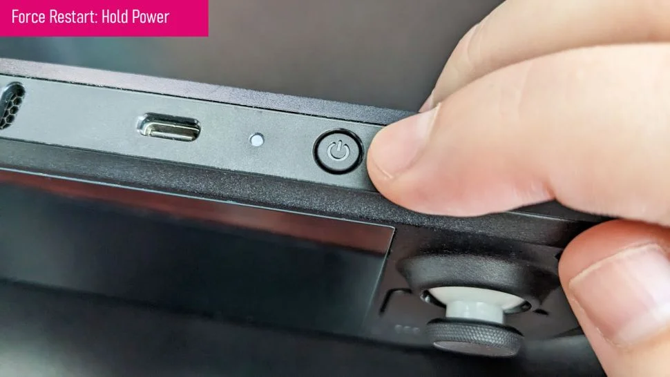 Giải pháp đầu tiên để thử khi Steam Deck của bạn không bật là thực hiện khởi động lại. Đây là một quá trình đơn giản có thể được thực hiện bằng cách giữ nút nguồn trong 12 giây. Nếu Steam Deck bật lại và trông bình thường sau khi khởi động lại lực lượng, thì bạn đã sẵn sàng.